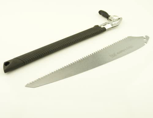刃渡り:360mm。目数:11枚目。切幅:1.35mm。4列目・飛びアサリ、衝撃焼入、ハードクロッムメッキ。