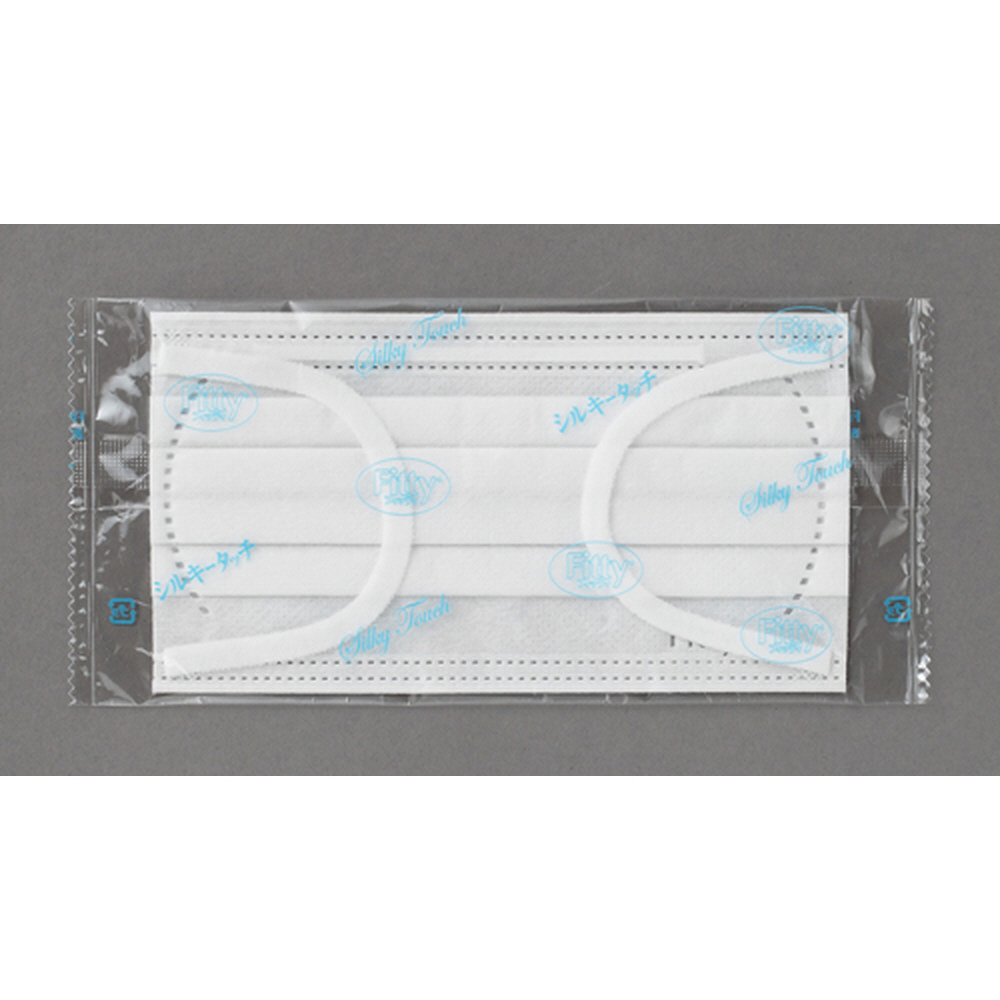 シルクのような肌ざわりの不織布+耳にやさしい幅広ふわふわゴムを採用した耳が痛くなりにくい、着け心地の良いマスクです。