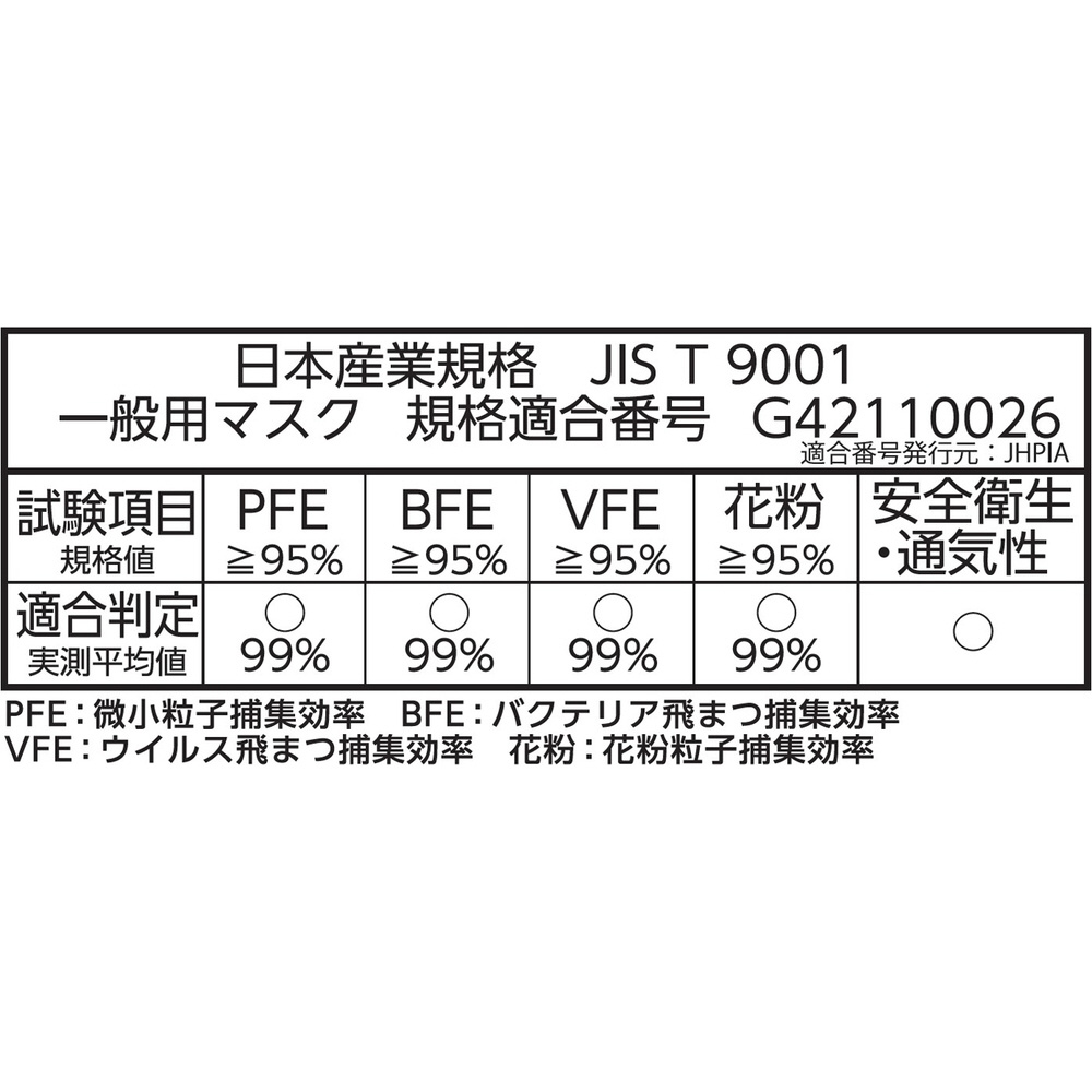 | 仕様2 | 素材 本体・フィルタ部:ポリプロピレン、ポリエチレン 耳ひも部:ナイロン、ポリエステル、ポリウレタン ノーズフィッター部:ポリエチレン |