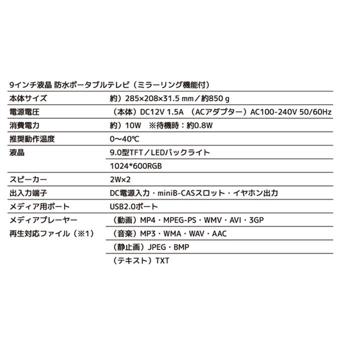 ポータブルテレビ OVERTIME OT-WPT90AK [9V型 /防水対応]