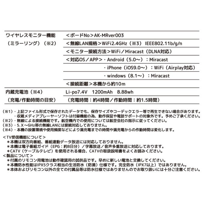 ミラーリング機能でオンラインの映像も楽しめる防水ポータブルテレビ