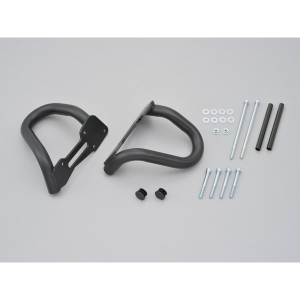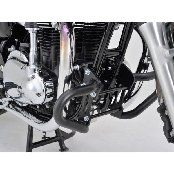 ボルトオン装着可能なφ28.6スチールパイプ製の強固なエンジンガード。立ちゴケ等の軽度な転倒に対し、エンジンやカウルのダメージを軽減します。