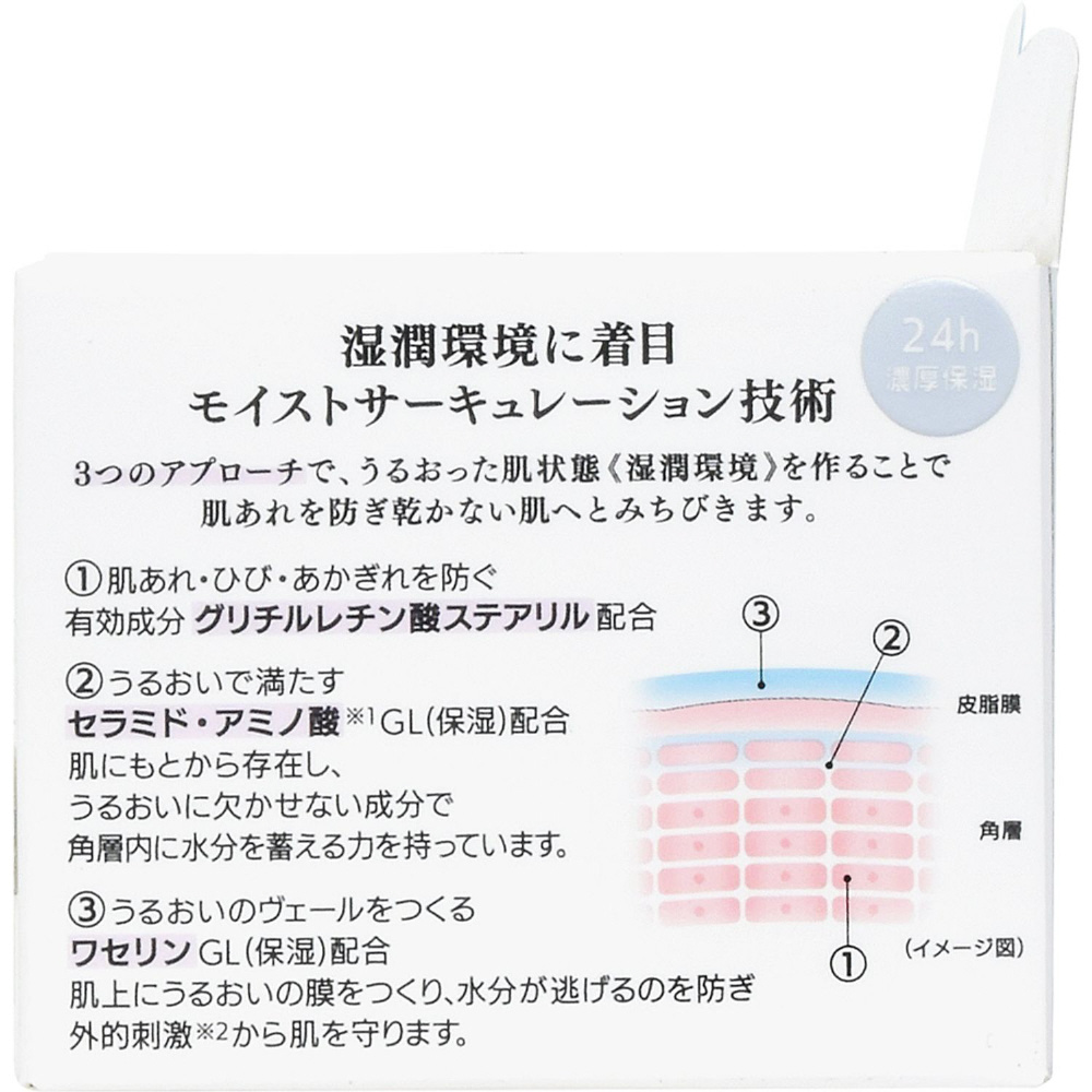 こっくり濃厚なクリームが密着浸透。うるおいヴェールでバリア機能を高め、乾かない肌へみちびきます。たっぷり使えるサイズ。*無香料・無着色・パラベンフリー・アルコール(エチルアルコール)フリー