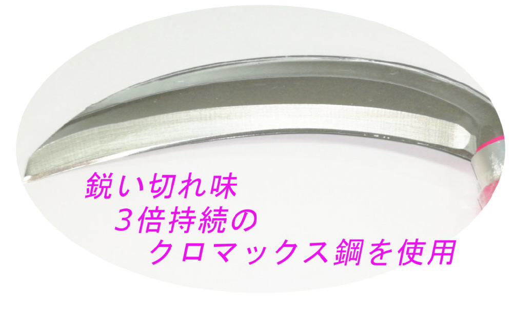やわらかい草を刈るのに最適です。庭の雑草・畑の草刈に。錆びづらく非常に鋭利な刃先で切れ味3倍持続のクロマックス鋼を使用。研ぎ直しもできる。鋼付で切れ味も長持ち。手になじみ作業しやすく疲れにくい。