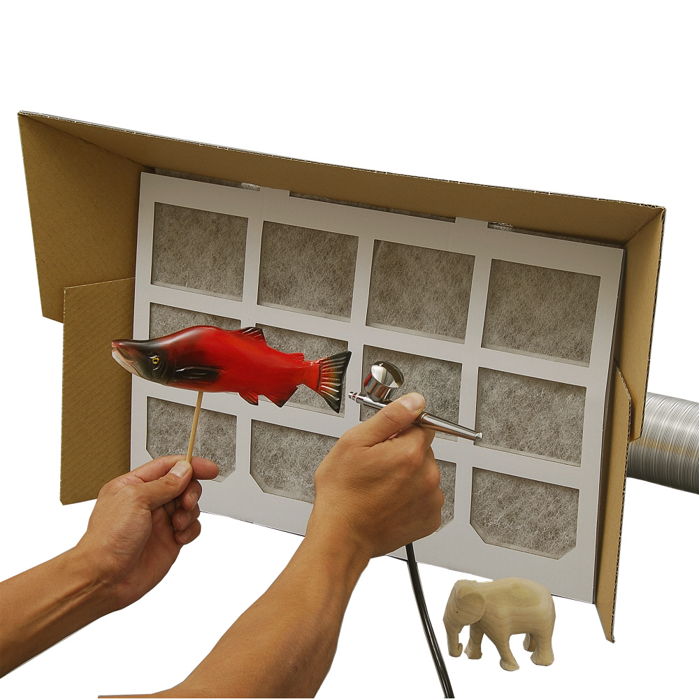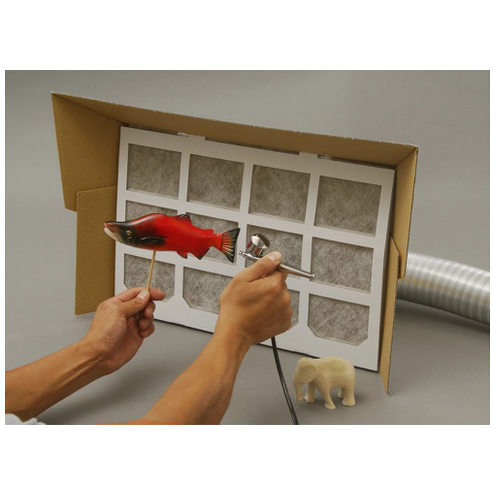 | 仕様1 | ●電源:100V、50/60Hz ●消費電力:20W ●寸法:横590×奥行き375×高さ370mm(換気ファンを含む) ●ダクトの長さ:1.5m ●付属品:スプレーブース本体1個/換気ファン1個/ダクトホース1本(1.5m)/フィルター3枚 |