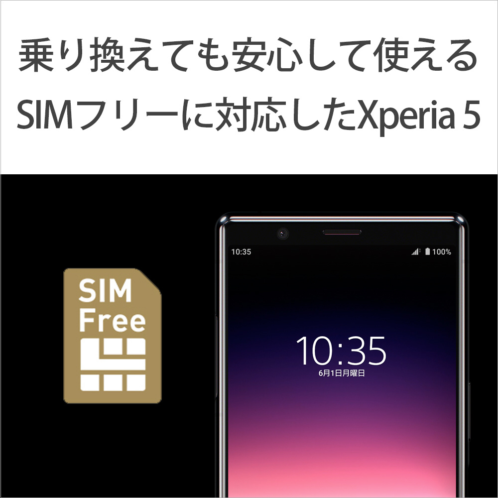 【SIMフリー】 ソニー Xperia5 防水・防塵・おサイフケータイ Snapdragon 855 6.1型・メモリ/ストレージ:6GB/128GB nanoSIM x2 ドコモ / au / ソフトバンクSIM対応 SIMフリースマートフォン Xperia ブラック
