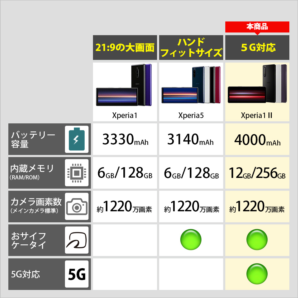 【SIMフリー】 ソニー Xperia1 II 5G・防水・防塵・おサイフケータイ Snapdragon 865 6.5型・メモリ/ストレージ:12GB/256GB nanoSIM x2 ドコモ / au / ソフトバンクSIM対応 SIMフリースマートフォン Xperia