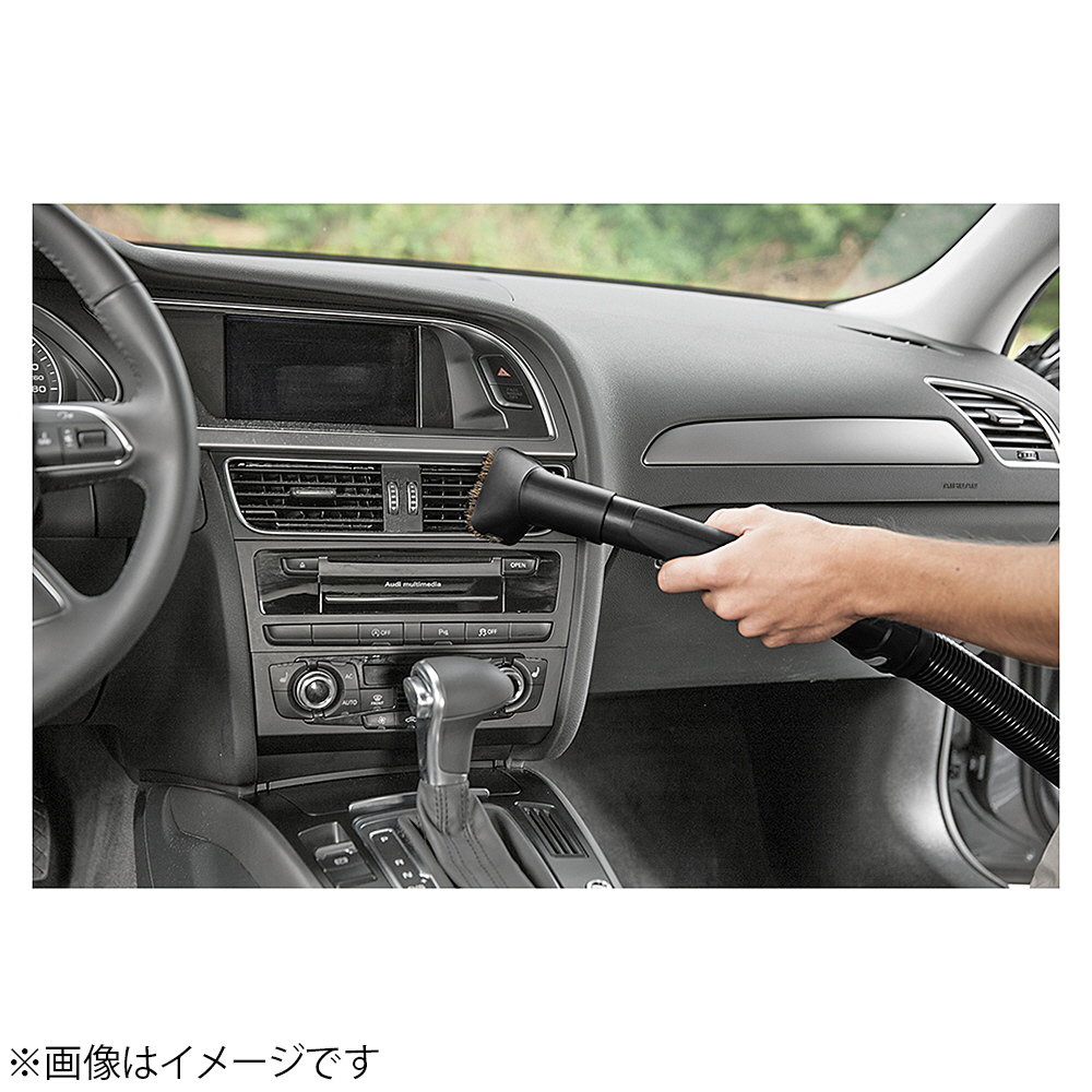 ケルヒャー乾湿両用バキュームクリーナーのオプションアクセサリー、車内清掃キットです。車のフロアマットや座席シート、ダッシュボードやトランクまで、このキットを使用すれば車内のあらゆる場所のお掃除が完璧です。