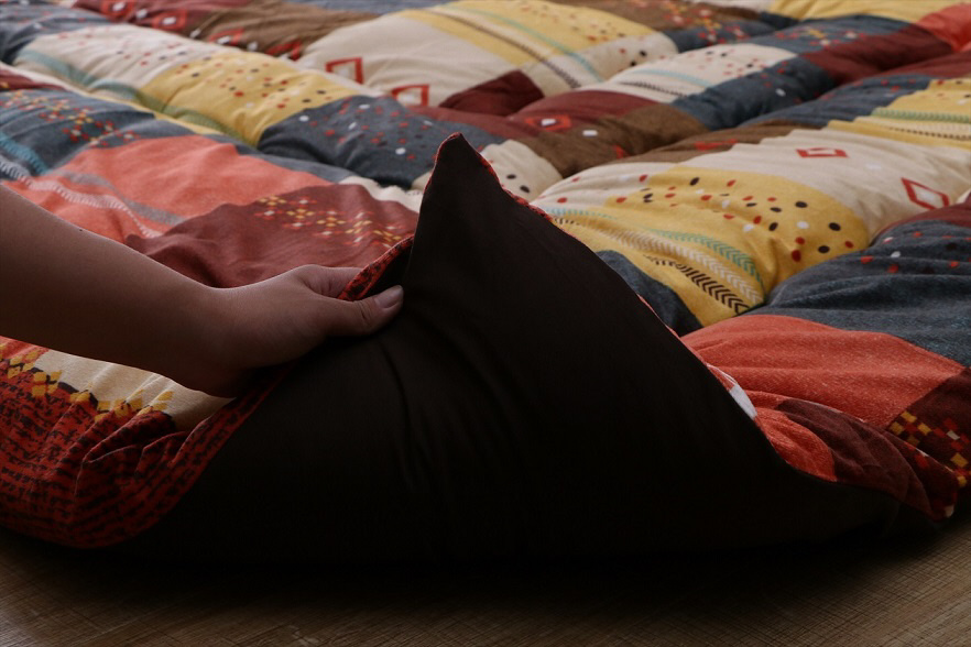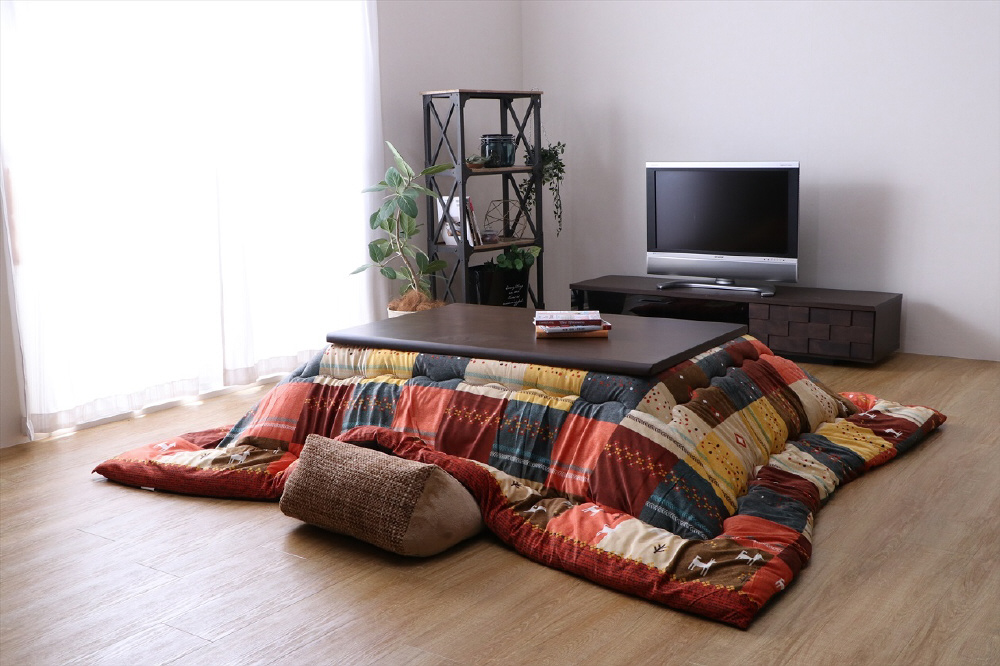 かわいらしいギャベ柄プリントの大判こたつ厚掛ふとんです。