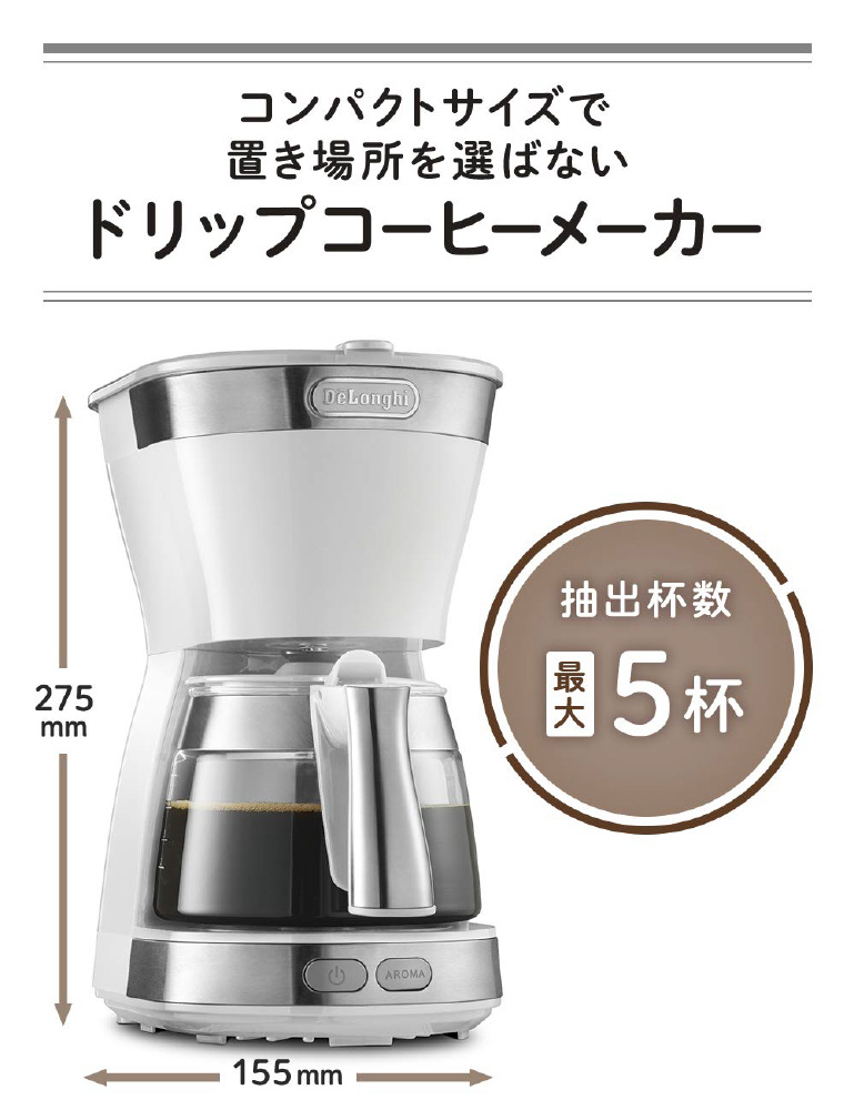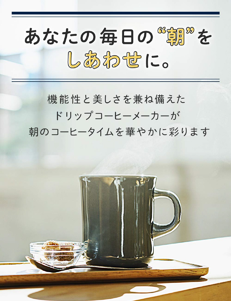 アロマ機能搭載のコンパクトなドリップコーヒーメーカー。