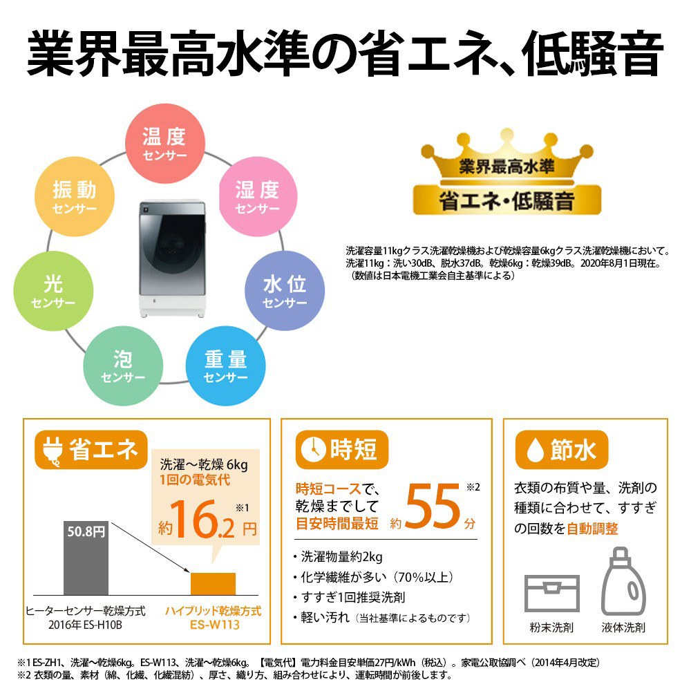 | 商品名 | ドラム式洗濯乾燥機 シルバー系 ES-W113-SL [洗濯11.0kg /乾燥6.0kg /左開き] |