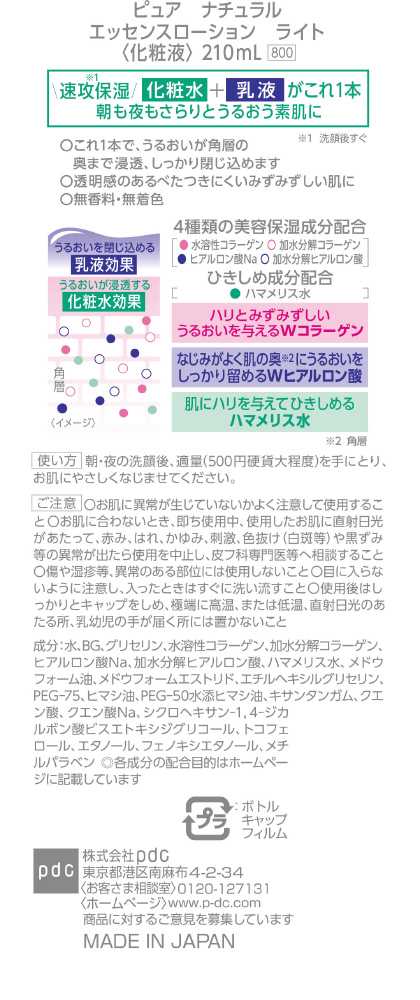 | 商品名 | エッセンスローション ライト 210ml Pure NATURAL(ピュアナチュラル) |