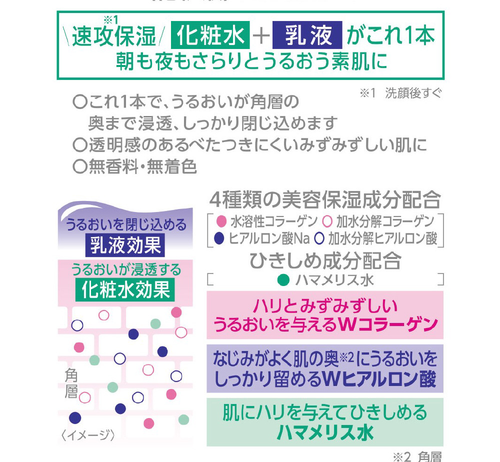 洗顔後はこれ1本でOK!「化粧水」と「乳液」が1本になったさっぱりタイプのローション。