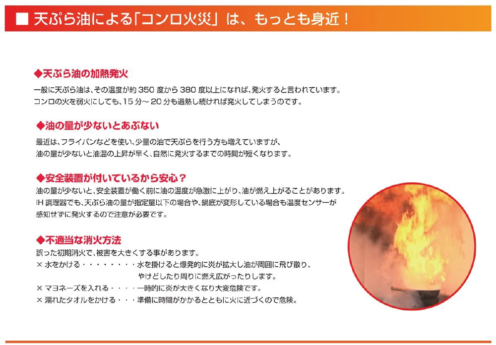 1L以下の天ぷら油火災に対応。