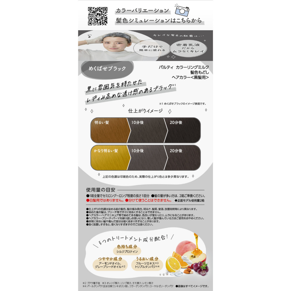 | 商品名 | パルティ カラーリングミルク 髪色もどし <めくばせブラック> |