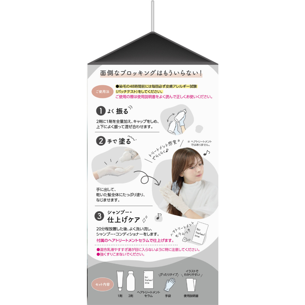 必要に応じて、付属のヘアトリートメントセラムで仕上げます。