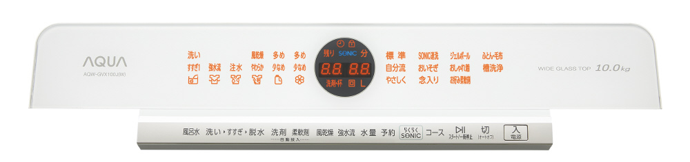 | コース | 標準、自分流、やさしく、おいそぎ、念入り、お好み柔軟剤、ジェルボール、ふとん・毛布、SONIC速洗、おしゃれ着、槽洗浄 |