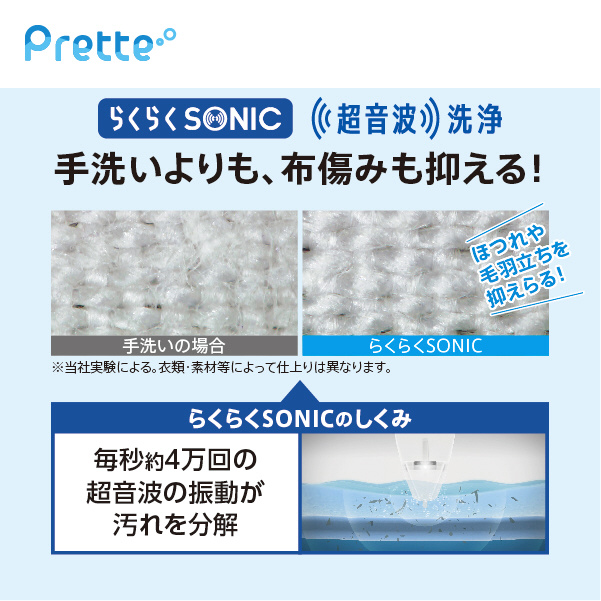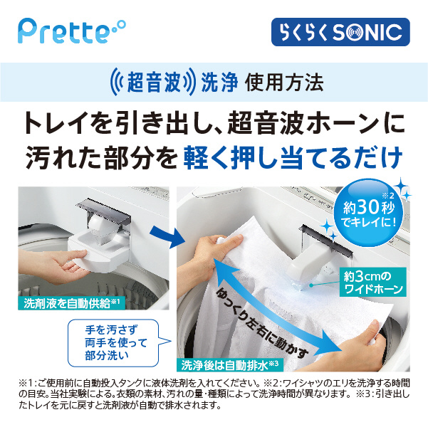 洗濯の常識が変わる。部分洗いに、超音波洗浄。洗剤自動投入機能付き「らくらくSONIC」搭載 全自動洗濯機。