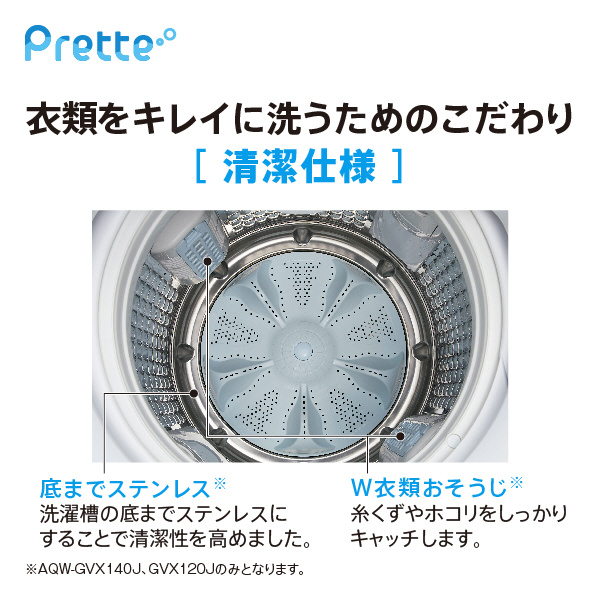 | 商品名 | AQW-GVX80J-W 全自動洗濯機 Prette(プレッテ) ホワイト [洗濯8.0kg /乾燥機能無 /上開き] |