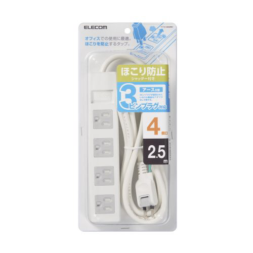 タップ ホワイト T-T1C-3425WH [2.5m /4個口 /スイッチ無]