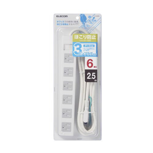 ■プロジェクタや複合機、モニタなどの3ピンプラグが採用されているOA機器をアダプタなしで接続することができる3ピンプラグ対応の6口電源タップ・OAタップです。コード長さ2.5mの延長コードです。