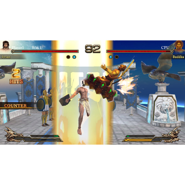 Fight of Godsは、ジーザスや仏陀など様々な伝説上のキャラクターが登場する古典的な水平格闘ゲームです。