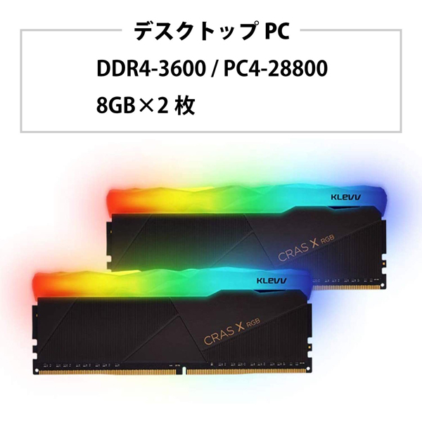 「デスクトップPC用ゲーミングメモリ PC4-28800 DDR4 3600MHz 8GB × 2枚 CRASXシリーズ SK hynix製 メモリチップ採用 RGB 288pin」