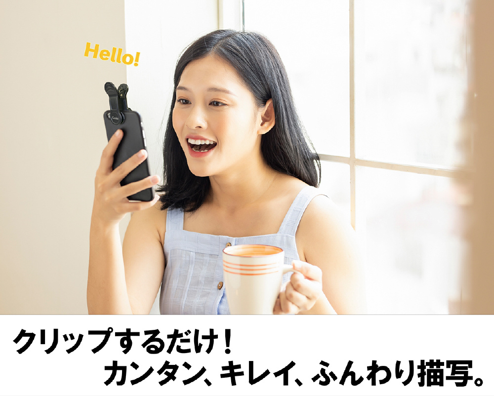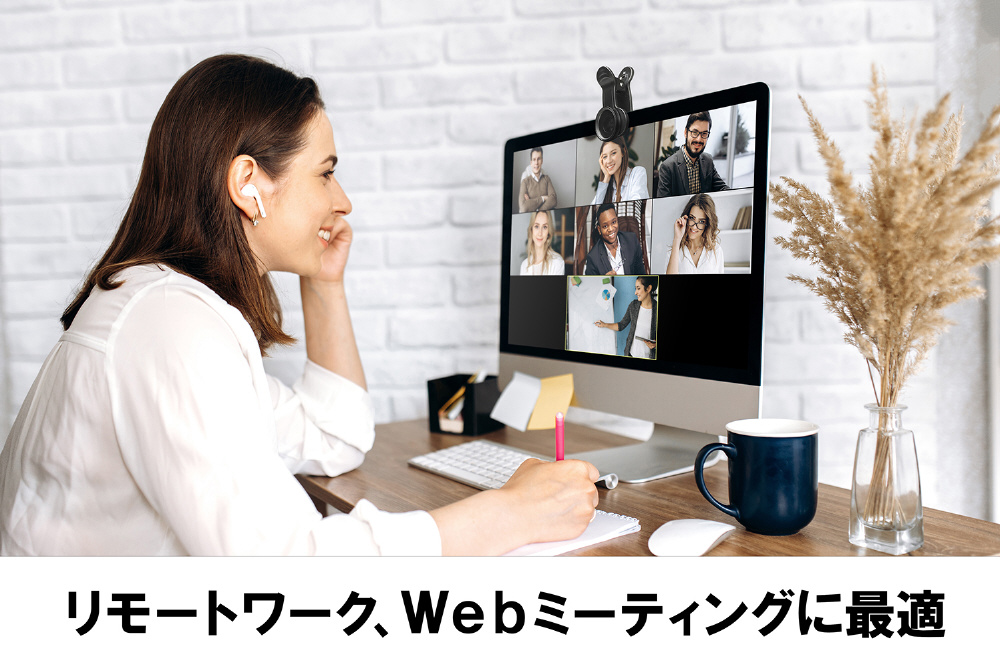 デバイスのカメラ部分をクリップで挟むだけ。むずかしい操作やアプリは不要で、かんたんにふんわりきれいな写りを叶えます。オンライン飲み会や、急なWeb会議・リモートワークではもちろん、映える写真の撮影にも活躍します。