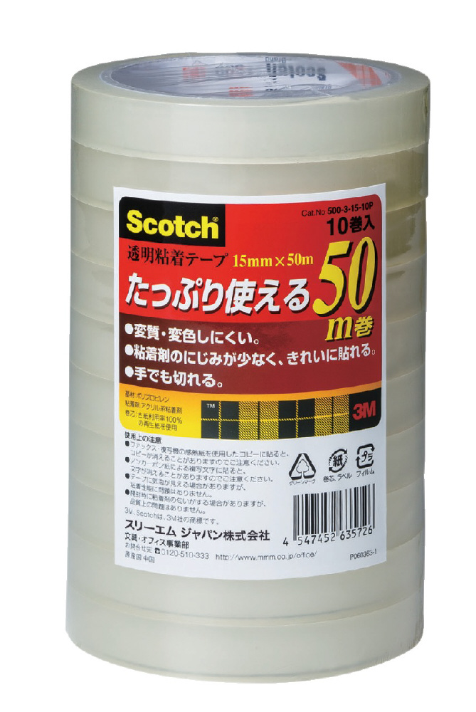 | 商品名 | 透明粘着テープ500 15mmx50m Scotch(スコッチ) 500-3-15-10P |