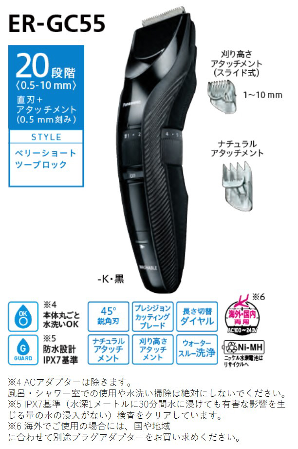 | 商品名 | ER-GC55-K ヘアカッター 黒 [交流充電式] |