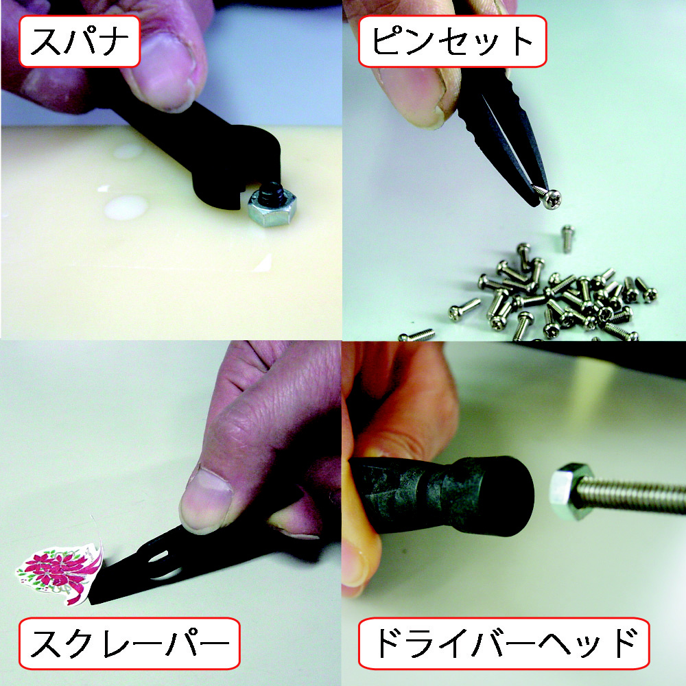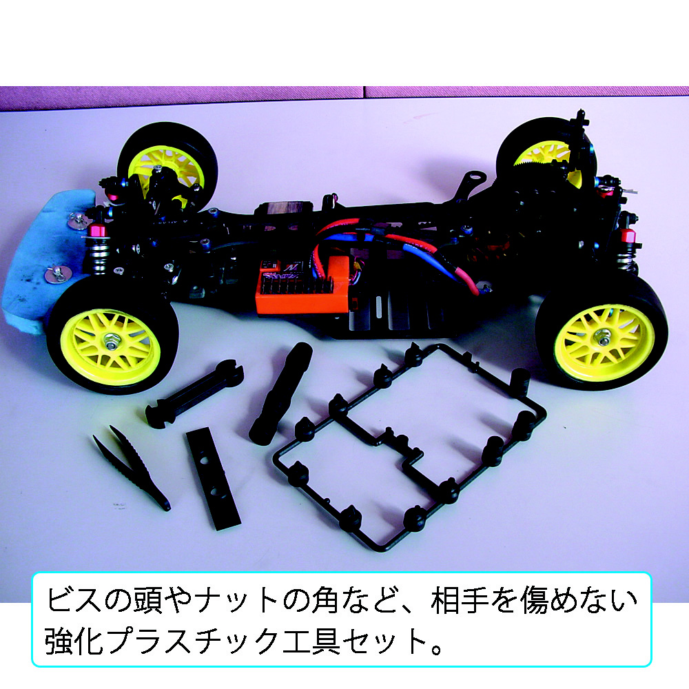 ●ビスの頭やナットの角など、相手を傷めない強化プラスチック工具セット。