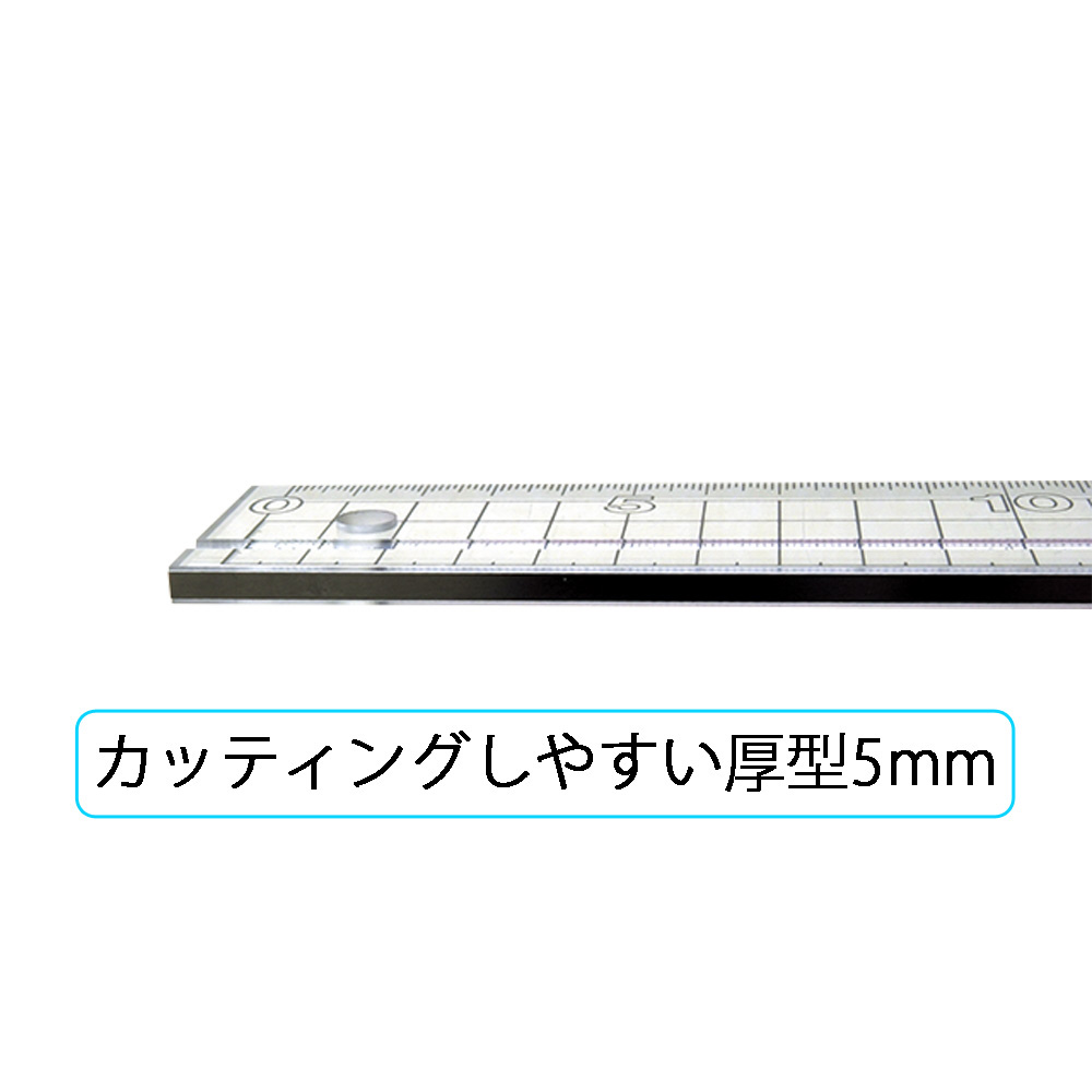●透明で切断物が見やすいアクリル製で、カッティングしやすい厚型5mm。