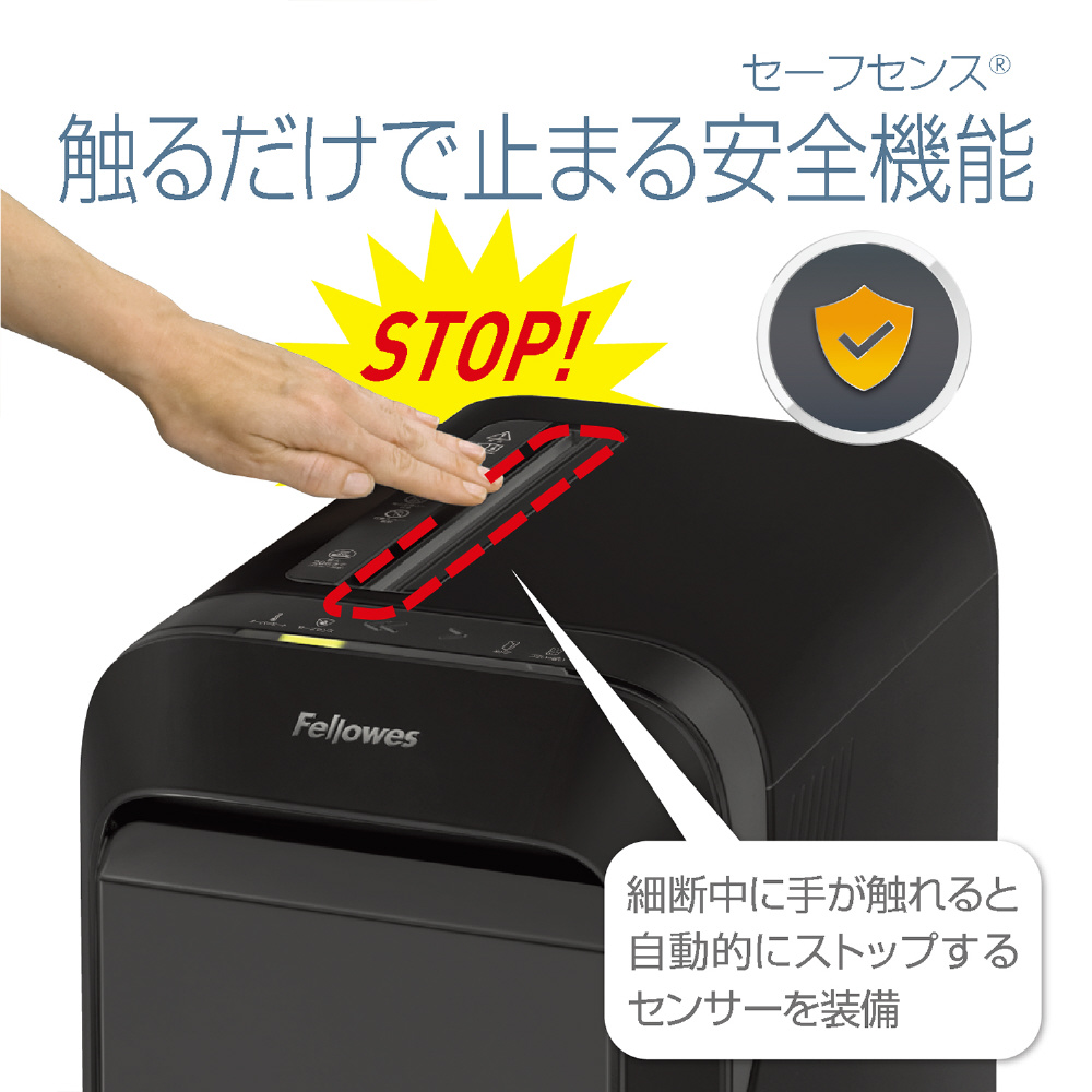 投入された紙の量を感知するセンサーを装備。枚数が多すぎると細断をスタートせず、細断中の紙厚の変化にも即座に対応。過投入しても書類を噛み込まないので容易に取り除くことができ、ギアやモーターへの負担が低減します。