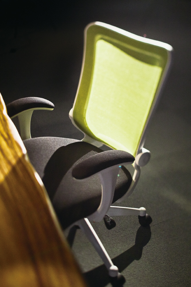 肘掛け付き(クッション有り)/ゆったりとオフィスワークをする際に活躍する肘掛けが付いたオフィスチェア。肘が当たる部分には、肘当たりの良いクッション付き。