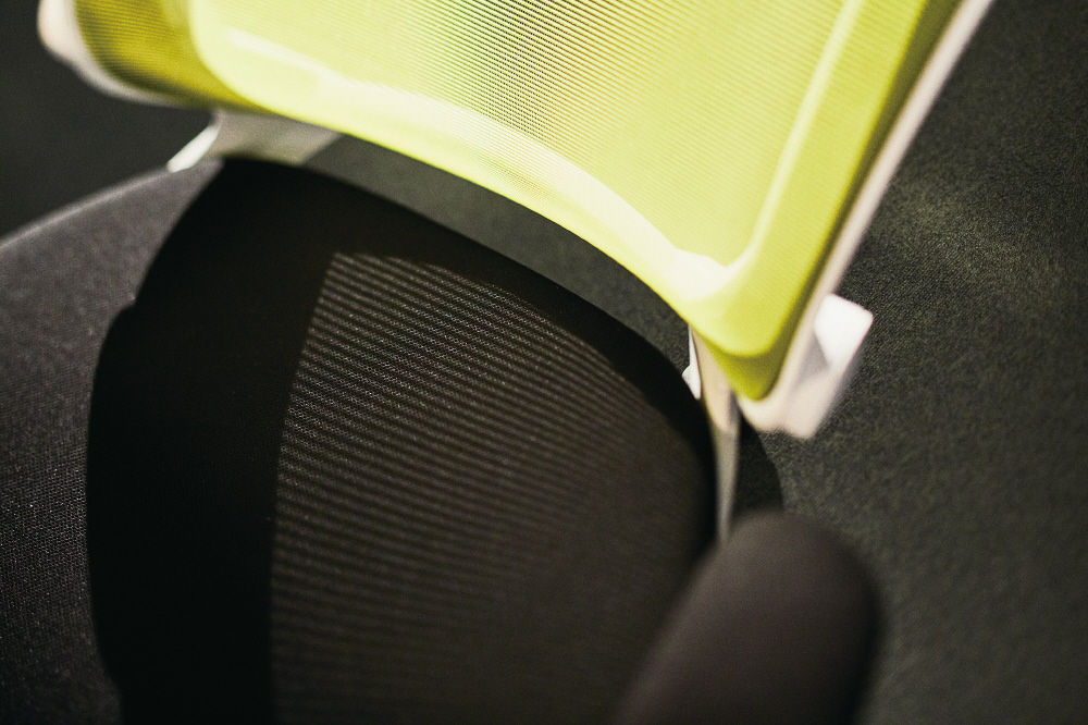 ■背もたれがメッシュ生地/背もたれは通気性の良いメッシュ生地を採用。長時間のオフィスワークでも背もたれに熱がこもらないのでいつでも快適。また弾力性もあるので背当たりの良い座り心地。