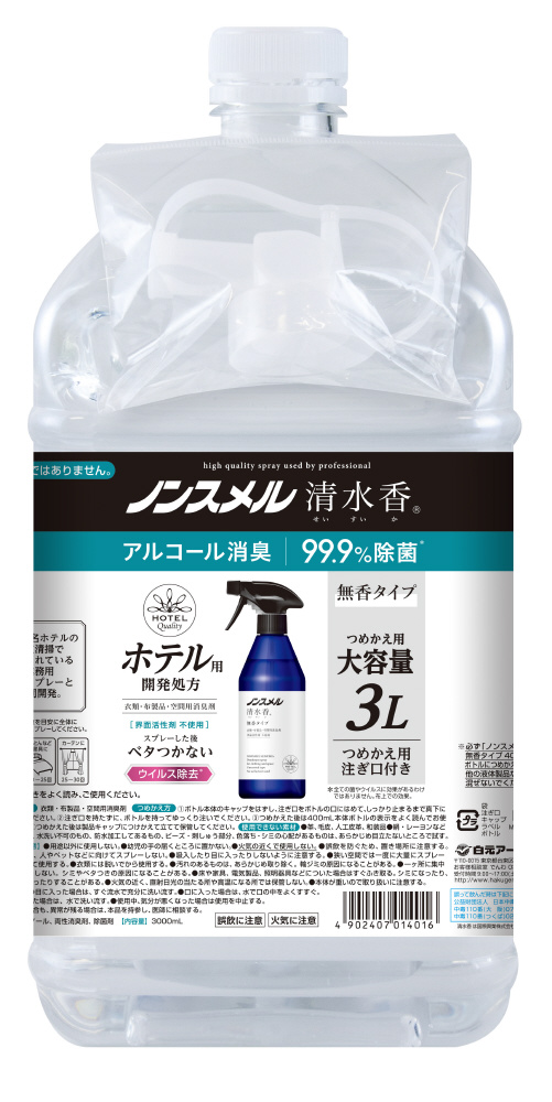 | 商品名 | ノンスメル清水香 無香 つめかえ大容量 3L 無香 |
