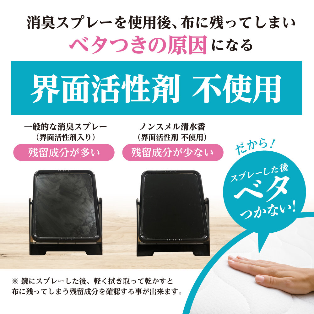 ●界面活性剤不使用でスプレー後ベタつかず、毎日快適に使用できます。