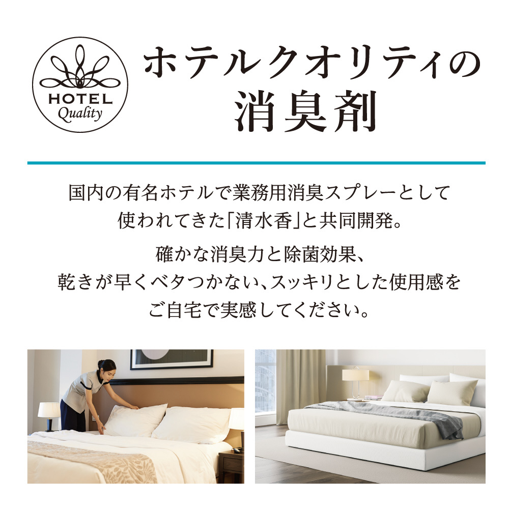 衣類・布製品の気になる汗・体臭・タバコ・料理・ペットなどのニオイを消臭・除菌。ウイルス除去にも。空間にも使用できます。界面活性剤不使用でスプレーした後にベタつきません。速乾タイプ。無香料。