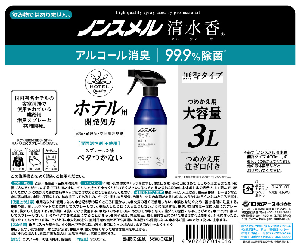 ノンスメル清水香 無香 つめかえ大容量 3L 無香