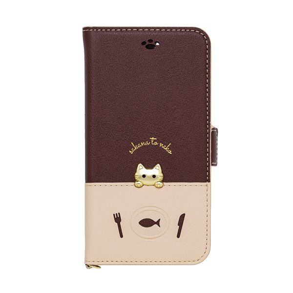 iPhoneSE2/iPhone8/7/6s/6手帳型ケース sakana to neko Bタイプ Brown iP7-DISH04