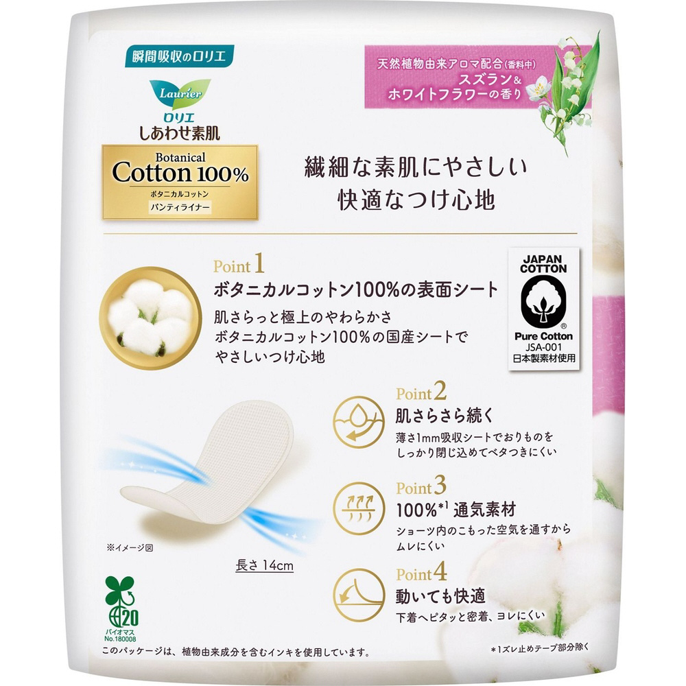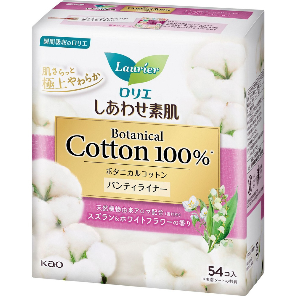 Laurier(ロリエ)しあわせ素肌パンティライナー Botanical Cotton100% 54コ入 スズラン&ホワイトフラワーの香り