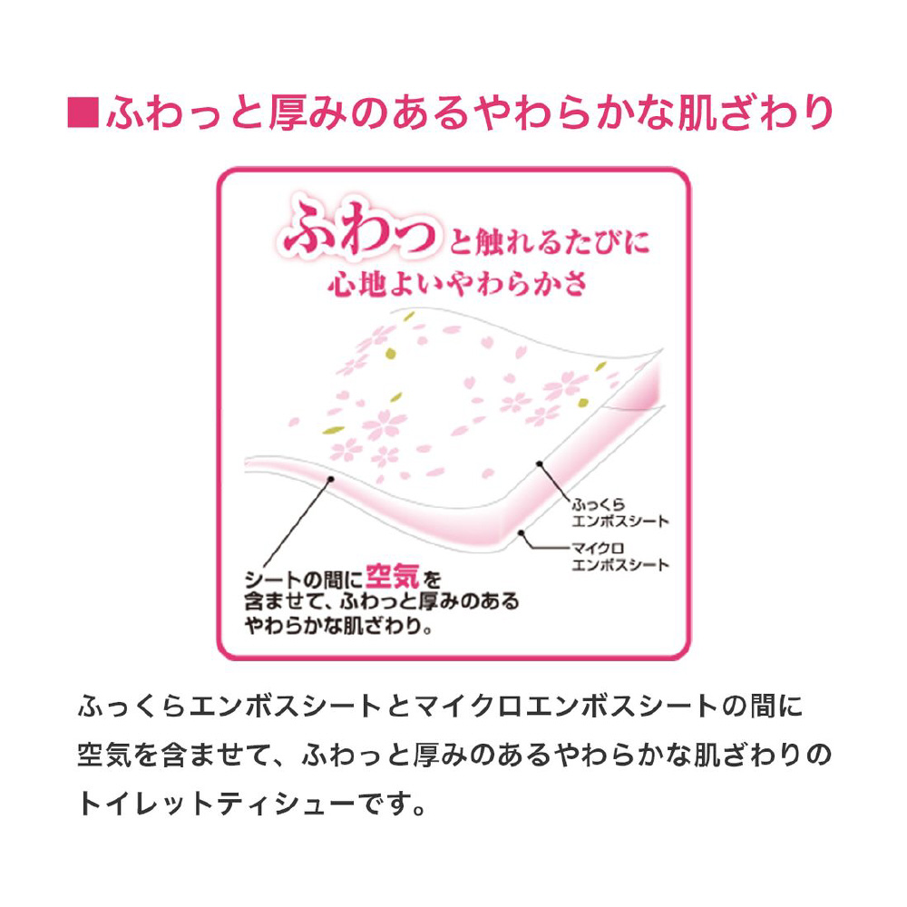 ふんわりエンボスで厚み感を演出。温水洗浄トイレにも使えるピュアパルプ100%のトイレットティシューです。