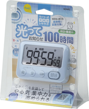 最大100時間まで時間が計れるので、長時間の試験対策や実験などの計測にも使えます。音のON/OFF設定が可能で、タイムアップを光でお知らせします。塾・図書館などの音が鳴ってほしくない場所でも安心して使えます。