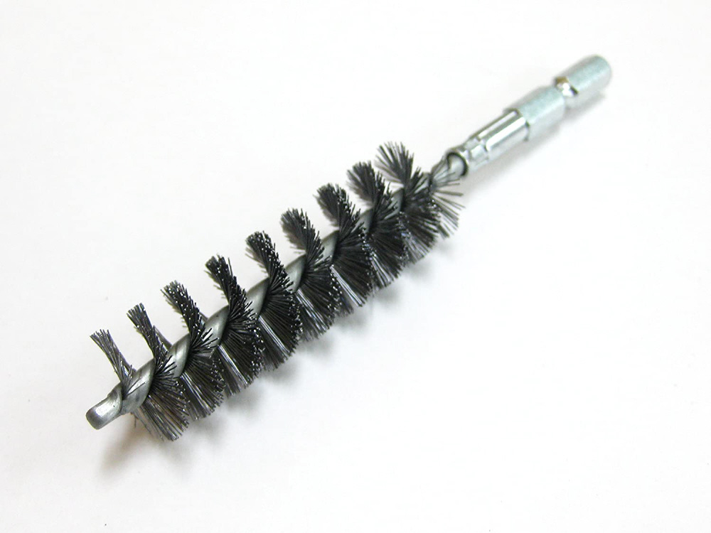 金属製品のサビ落としや表面処理、バリ取りに。金属パイプの内面研磨や清掃に。平巻きの芯線を採用することによりブラシの飛散が減り、安定した作業が行えます。必ず正回転で使用してください。※逆回転で使用するとワイヤーが飛散し危険です。