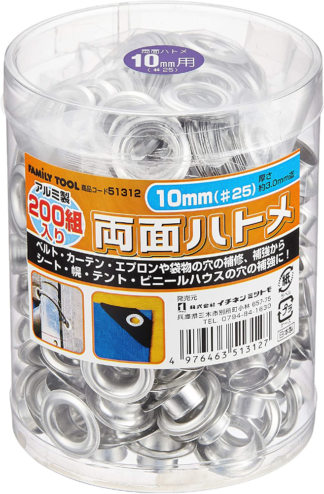 | 商品名 | FAMiLYTOOL 両面ハトメ玉アルミ10mm |