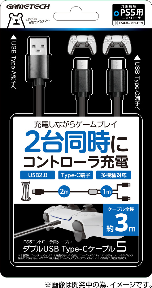 USB Type-Cケーブルを2本搭載。PS5用コントローラを2台同時に充電可能