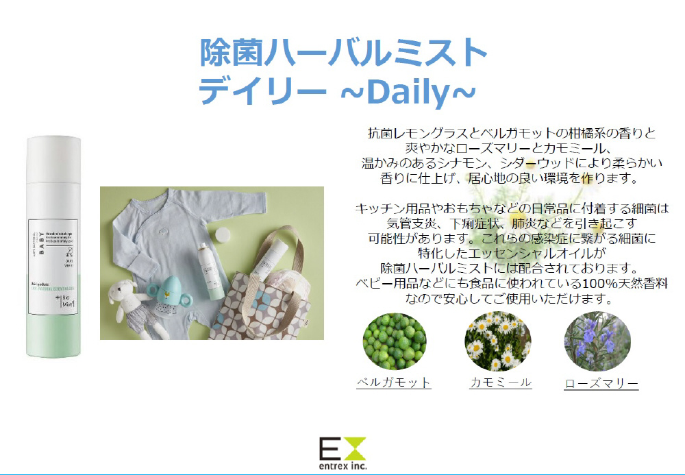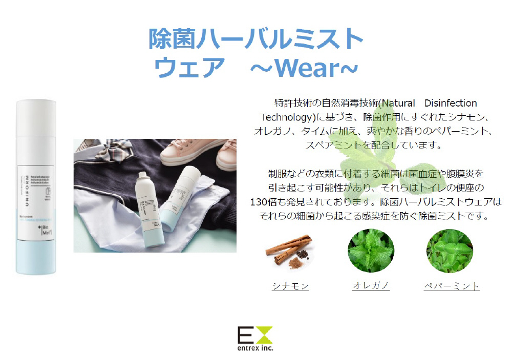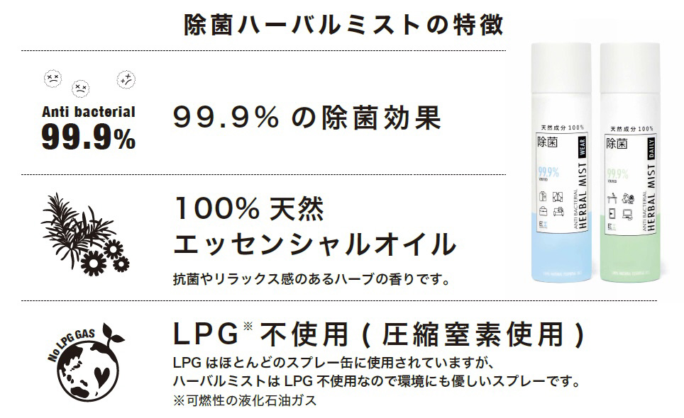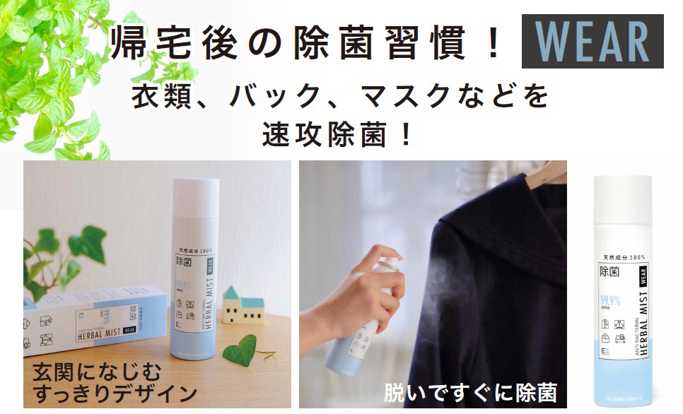 天然成分100%の除菌作用に優れた独自のエッセンシャルオイルが配合されており、制服やスーツなどに付着する菌に最適な除菌スプレーです。