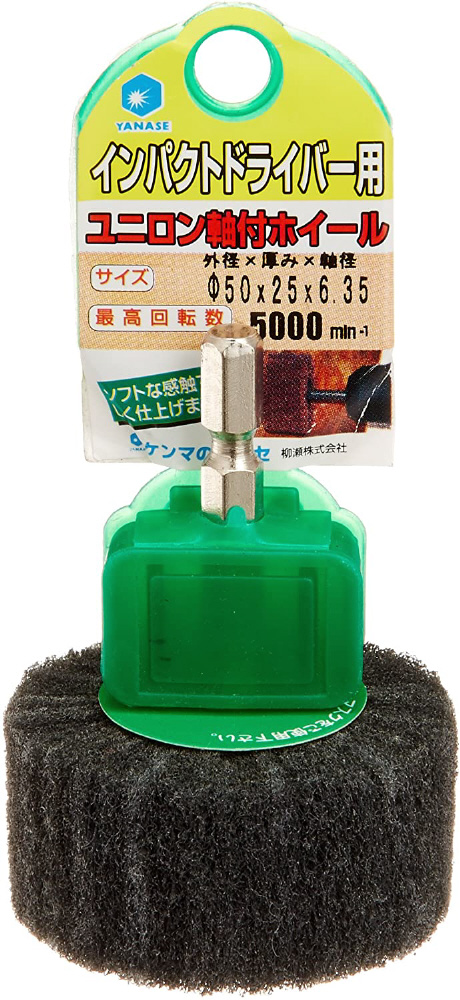 インパクトドライバーや電気ドリルなどの先端パーツ。下地(素地)を傷めず表面のみを磨きます。ナイロン繊維が柔らかくソフトに研磨し曲面にも馴染みます。金属のサビ落とし。木材の表面クリーニング。ステンレス・アルミ製品の中仕上げ。ヘアーライン入れ。