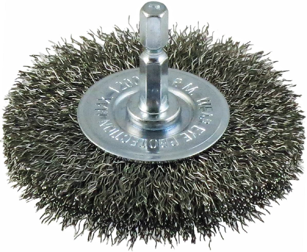 軸径:六角6.35mm。研磨部:75×20mm。線材:ステンレス線。最高回転数:4,500min-1。