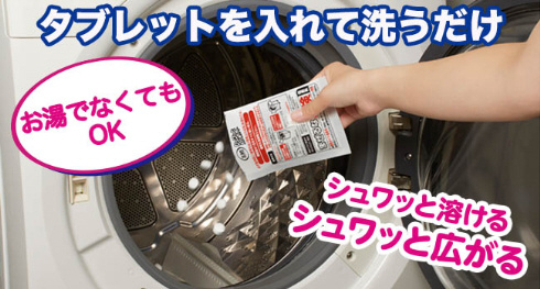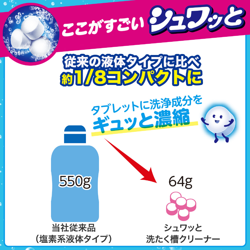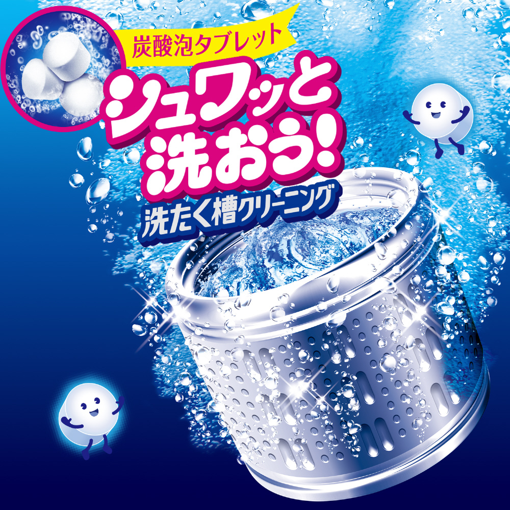 【シュワッと洗おう 洗たく槽クリーニング】シュワッと溶けるタブレットタイプ。つけおきは不要です。